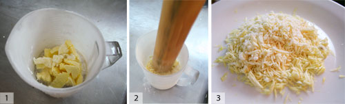 1)將回火的巧克力倒入液氮中。2)收獲花粉。