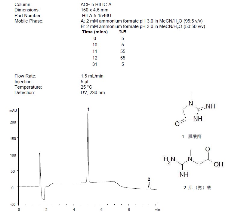 針對不同酸堿性的化合物,ACE設計了三款HILIC柱(A,B和N),實現(xiàn)不同的選擇性。比如: