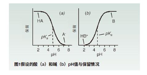 圖2b顯示了酸性、堿性和中性化合物pH值與保留情況的關(guān)系。