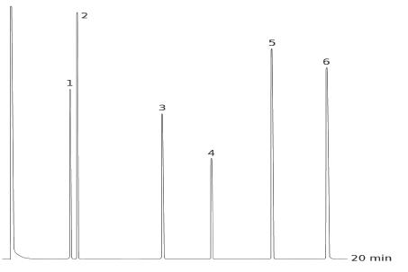 升溫程序:150℃ , 5℃ /min, 250℃ 載氣:氫氣 , 60 kPa