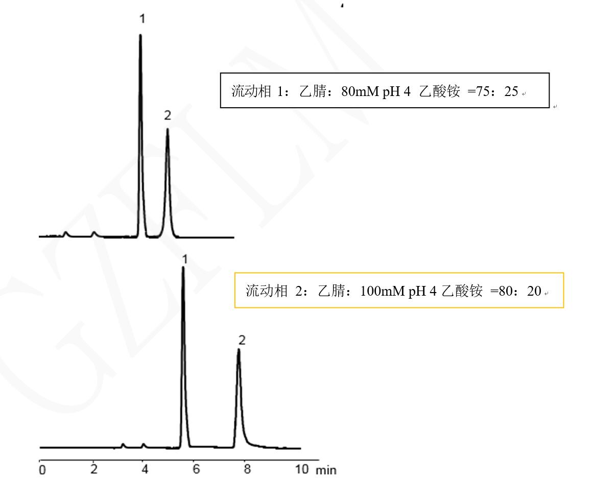 注:長柱可推薦用 Comixsil ACRP 5u 250*4.6mm 色譜柱,流動(dòng)相配置:700mL 乙腈+200mM 200mL 乙酸銨+100mL 水。