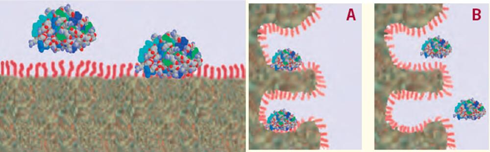 與疏水表面的厚度相比,蛋白質(zhì)要大得多,因此蛋白質(zhì)僅有一部分被疏水表面所吸附。
