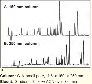 但是對于小分子多肽,往往長柱比短柱的分離度大,這點類似化學小分子。