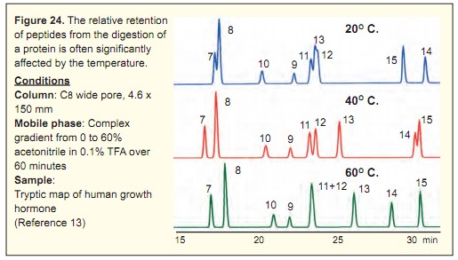 柱溫以及流動相的溫度從兩方面影響多肽的分離: