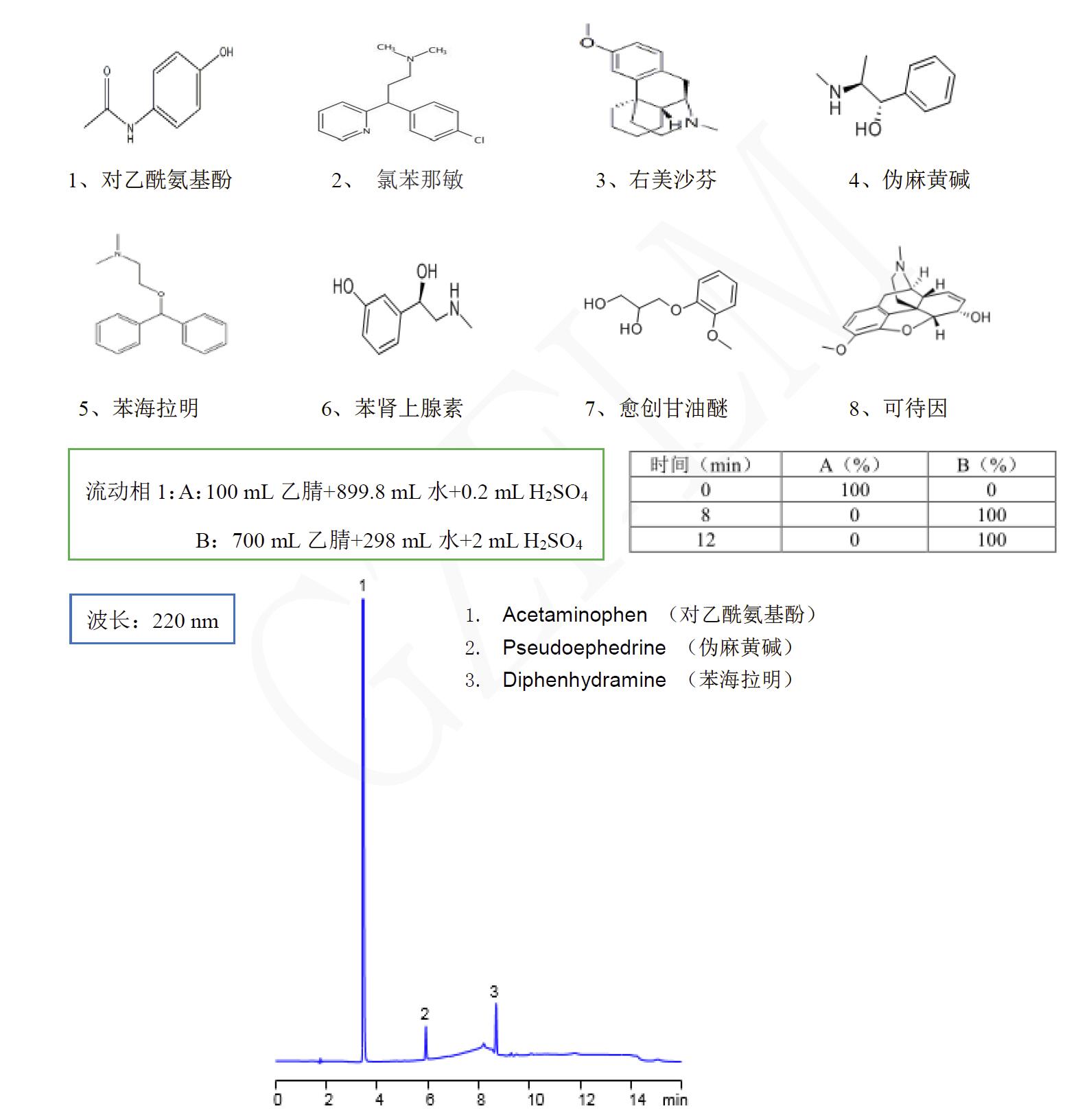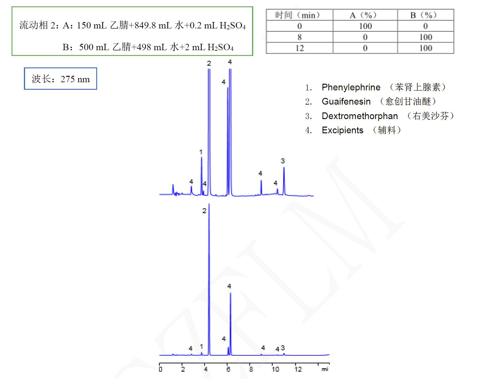 流速:1.0 mL/min(詳細(xì)流動(dòng)相如下)