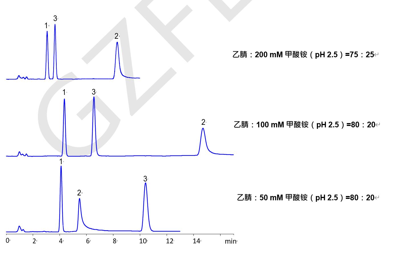 注:因此樣品對色譜柱條件較敏感,務(wù)必嚴格按固定的流動相條件平衡后操作。