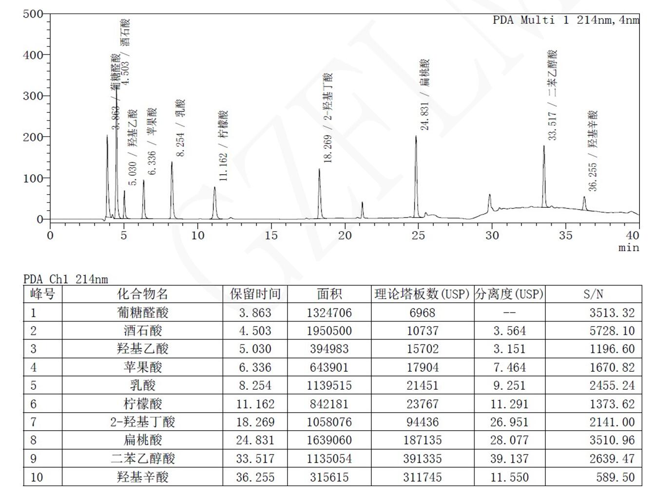 菲羅門液相色譜柱《化妝品安全技術(shù)規(guī)范》中 10 種α-羥基酸的檢測