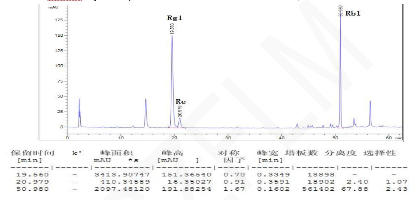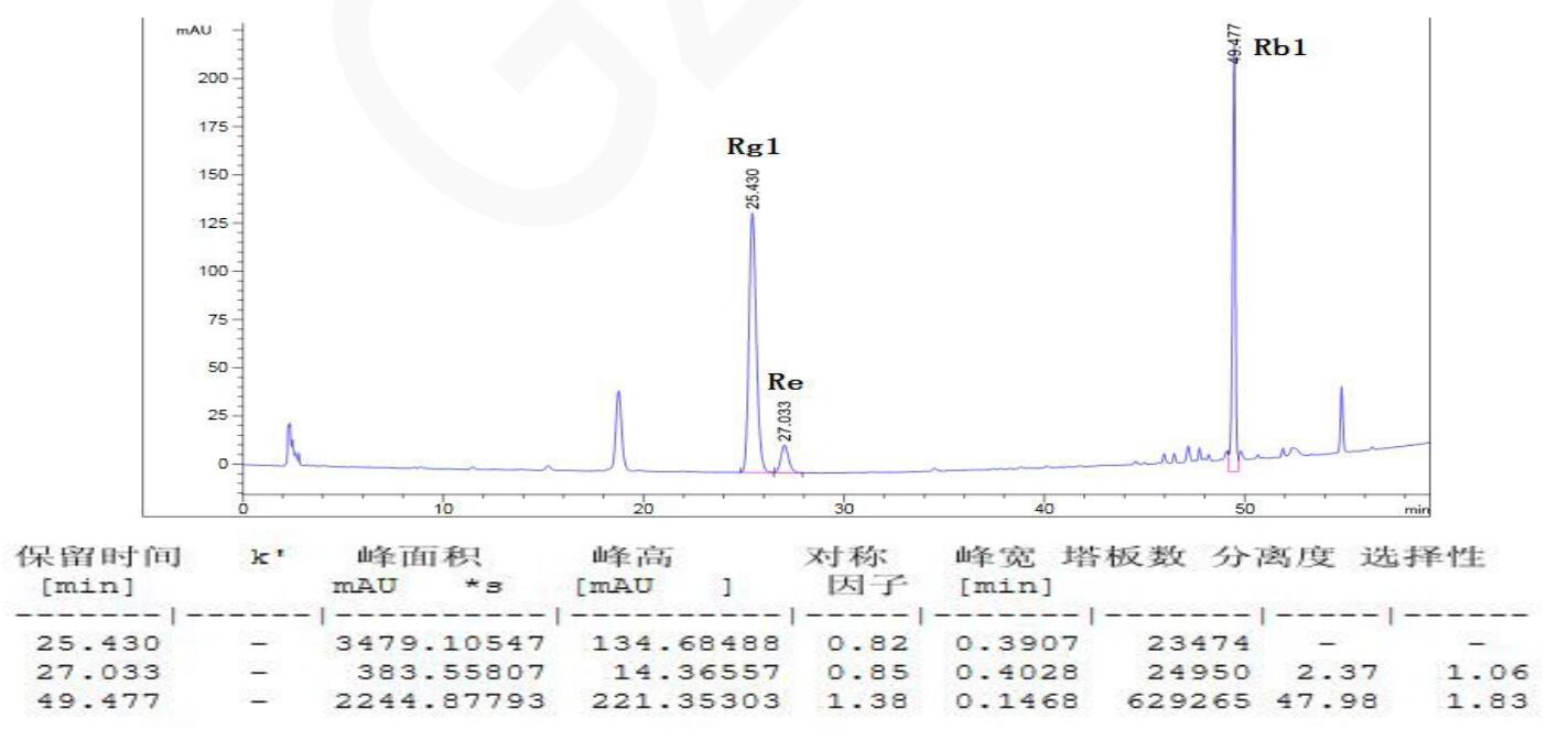 方法說明:使用 FastCore SuperC18 及 FastCore C18-AQ 均可以滿足 Rg1 與 Re 分離度問題,解決了分離度不佳的問題,同時(shí)塔板數(shù)亦可滿足中國藥典要求。