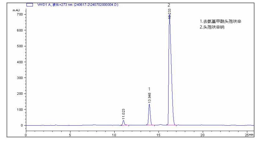 1. **系統(tǒng)適用性**: - 頭孢呋辛峰與去氨甲酰頭孢呋辛峰之間的分離度均大于**3.0**。 - 頭孢呋辛峰與后相鄰雜質(zhì)峰間的分離度均大于**2.0**。 - 這些參數(shù)均符合中國藥典的測(cè)試要求,為頭孢呋辛鈉藥物的質(zhì)量保證提供了可靠的檢測(cè)依據(jù)。