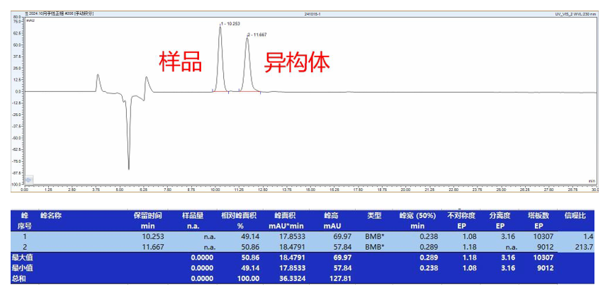綜上所述,使用菲羅門手性柱對(duì)烏帕替尼中間體進(jìn)行手性拆分是一個(gè)復(fù)雜但重要的過程。通過選擇合適的色譜柱、配置適當(dāng)?shù)牧鲃?dòng)相、進(jìn)行專業(yè)的操作和數(shù)據(jù)分析,可以確保拆分過程的順利進(jìn)行和拆分后得到的對(duì)映體的質(zhì)量。 |