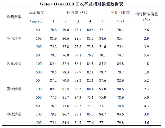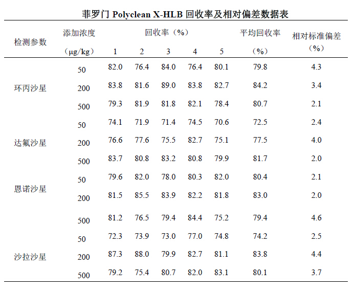 對(duì)照組采用菲羅門(mén)公司PolyClean X-HLB 60mg/3ml 與Waters 公司Oasis HLB(60mg,3cc)固相萃取柱,其余步驟相同。