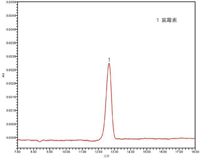 圖 1 添加水平為 0.5mg/kg 牛奶基質(zhì)中氯霉素檢測(cè)色譜圖