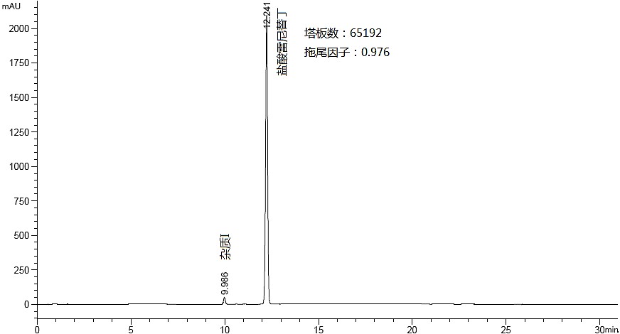 流動相:A:磷酸鹽緩沖液(取磷酸6.8ml置1900ml水中,加入50%氫氧化鈉溶液8.6ml,加水至2000ml,用磷酸或50%氫氧化鈉溶液調(diào)節(jié)pH值至7.1±0.05)-乙腈(98:2)