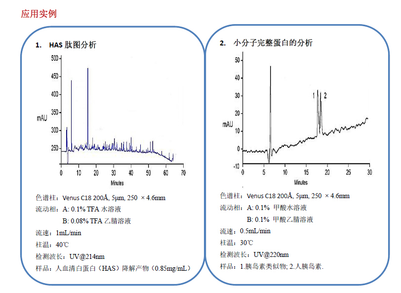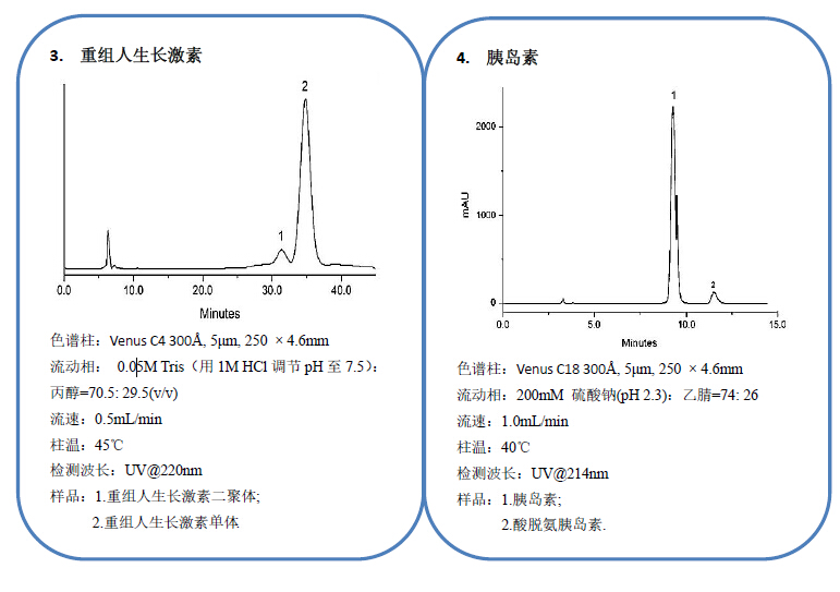 其在純水溶液中不會(huì)崩解。提供200 ?和300 ?兩種大孔徑規(guī)格,結(jié)合多種固定相選擇(C18、