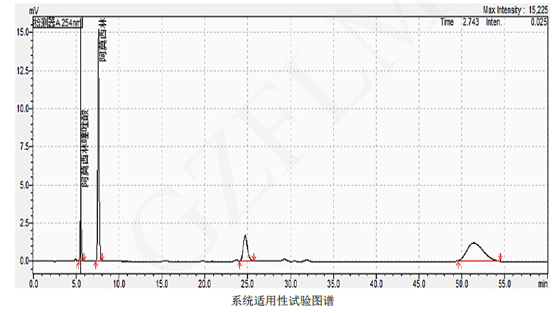 流動相:0.05mol/L 磷酸二氫鉀溶液(用 2mol/L 氫氧化鈉溶液調(diào)節(jié) pH 值至 5.0)-乙腈(97.5:2.5)