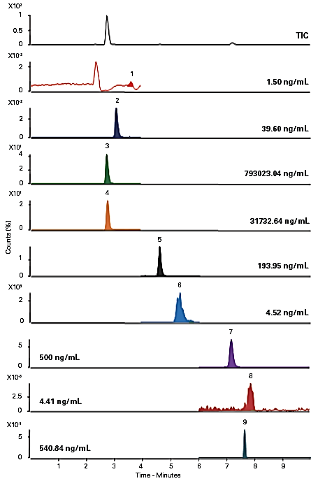 樣品:大鼠腦組織樣品加入甲酸水溶液勻漿處理,離心,然后用乙腈沉淀去除蛋白