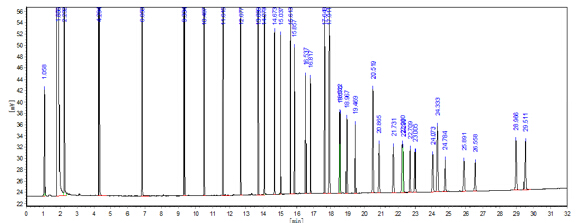 37 種 FAME 混標(biāo)色譜圖