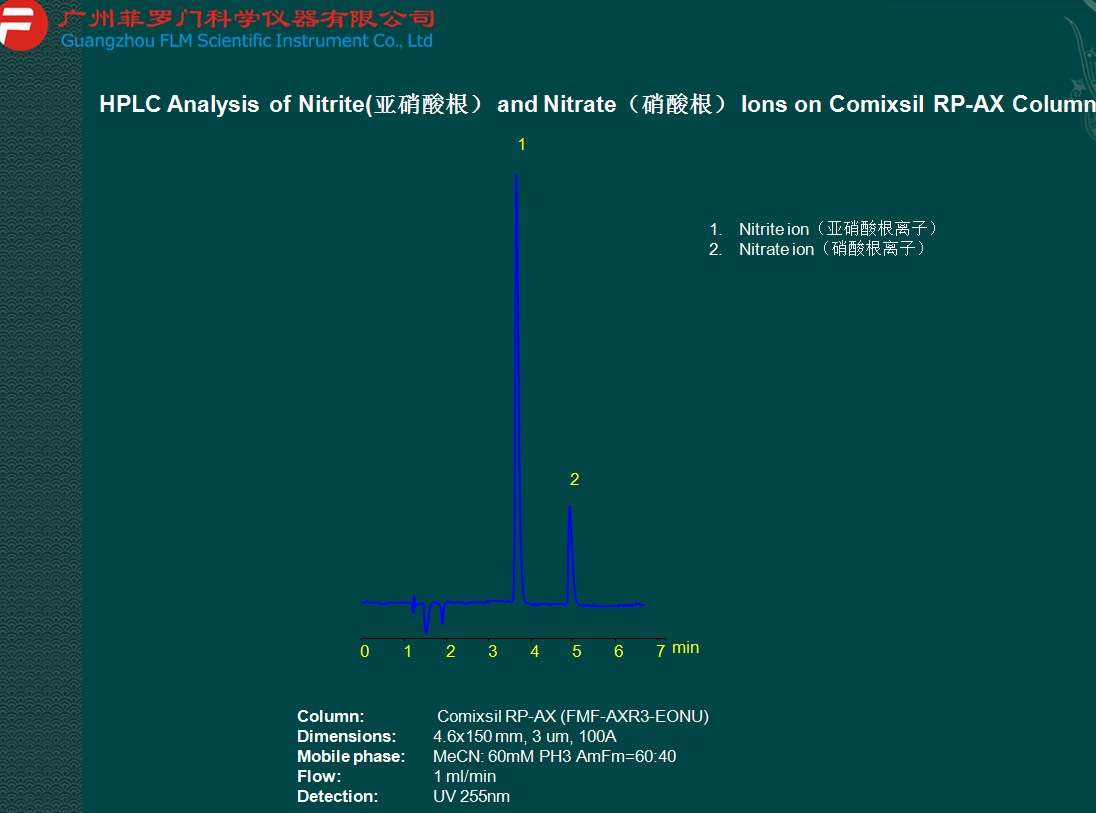 亞硝酸根離子檢測(cè)(基因毒性和元素雜質(zhì)相關(guān)應(yīng)用圖譜)菲羅門液相柱
