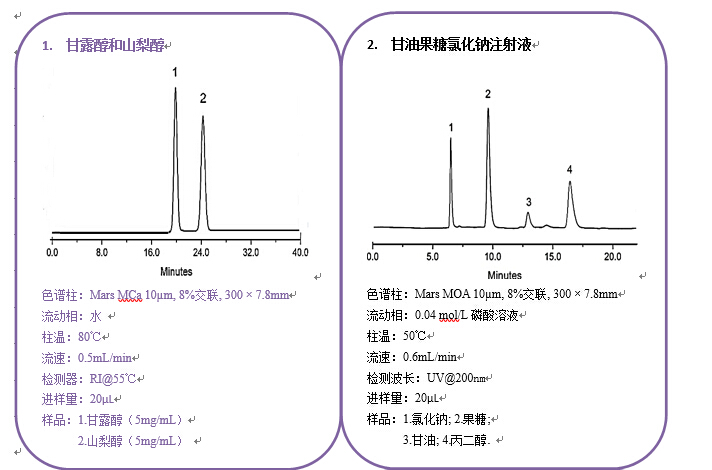 流動(dòng)相:H2O 流速:0.6 mL/min 檢測(cè)器:RID 柱溫:75 ℃ |
